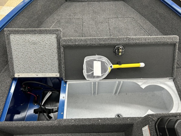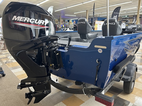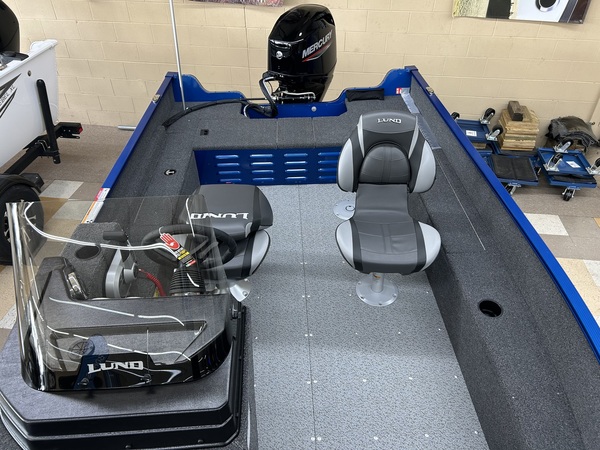 This 1650 Angler SS is nicely equipped and ready for a great day of fishing! The features and accessories on this boat include an IPS (Integrated Power Strake) hull, wood free construction, aluminum transom, dual trak gunwale, twin plated bottom (bow to amidship), aluminum propeller, custom console w/windshield, vinyl main floor w/carpeted decks, no feedback steering, 24V upgrade, auto bilge pump option, Mercury analog gauges, aerated livewell (37" long/16 Gallon), bow casting platform, bow deck mounting pad, bow trolling motor harness w/plug, 4 seat bases, 2 ProRide seats, 1 solid fixed mainstay, tilt steering upgrade w/seat slider, Kicker KMC1 stereo w/2 speakers, cell phone holder/charger, Lund ruler w/mounting clips, 4 stainless steel fold-down cleats, LED interior lighting, navigation lighting, battery holder and storage compartment, rod storage, 2 step strap ladder w/mesh bag, 12V power receptacle, bow and stern eyes, 6 gallon fuel tank w/line and storage, self-draining splash pan, drink holders, motor transhield, cooler -softside (24 can), fire extinguisher, horn, and travel cover. The Shoreland'r Lunguard bunk trailer is equipped with a swing tongue, load guides, mounted spare tire, dolly jack, retractable tie downs and LED trailer lights.