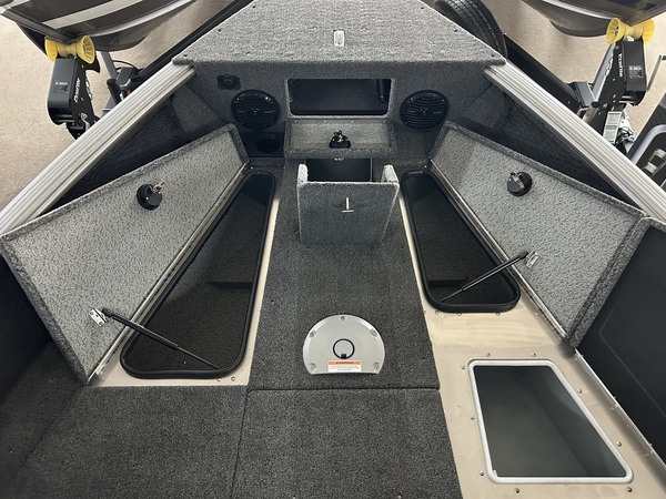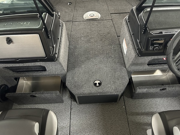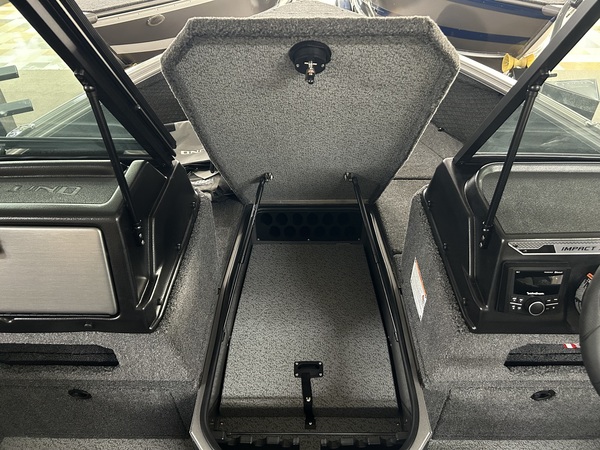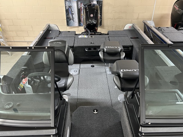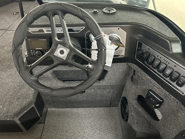 This "Black & Silver Stone Beauty" 1775 Impact XS Sport is loaded with upgrades and ready for a day on the water! The features and accessories include wood free construction, composite transom, standard graphics, custom dual consoles w/walkthrough, 30-gallon fuel tank, aluminum propeller, hydraulic steering w/tilt helm, kicker fuel line, dual trak gunwale, twin plated bow (bow to amidship), Mercury Analog Gauges, vinyl main floor w/carpeted decks, aft livewell (30" long) w/recirculating and pumpout, bow livewell (20" long), bow trolling motor plug in, trolling motor foot pedal recess, Airride pedestal upgrade, bow cargo nets, bow cushion w/int. back rest set, cooler-softside (24 can), fire extinguisher, horn, house battery option, Lund ruler, wireless phone charger, Rockford stereo upgrade w/4 Rockford Speakers, lockable glovebox, bow deck mounting pad, ski pole upgrade, Sport Top w/walkway curtain, top hider, under console drawers (Port & Starboard), travel cover, LED interior lighting, navigation lighting, dual USB port (Type A & C), full lighted instrumentation, standard battery switch, aft & bow casting platforms, bilge pump (1 pump auto/manual), 6 seat bases, 1 solid fixed mainstay, 3 ProRide seats, aft integrated jump seats, 4 step folding pan boarding ladder, lockable center and port rod storage, self-draining splash pan, port splash pan insert, bow and stern eyes, 4 stainless steel flip down cleats, 3 battery holders w/storage, and drink holders. The Shoreland'r Lunguard single axle bunk trailer is equipped with a swing-tongue, load guides, tongue jack, retractable tie downs, and LED lights.